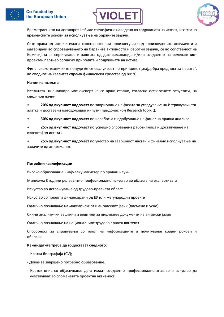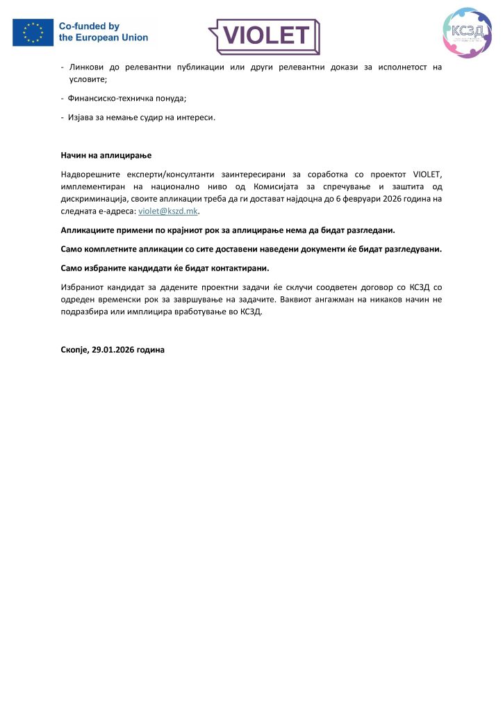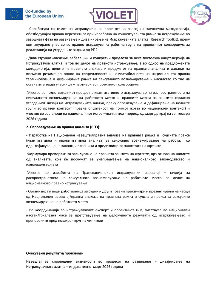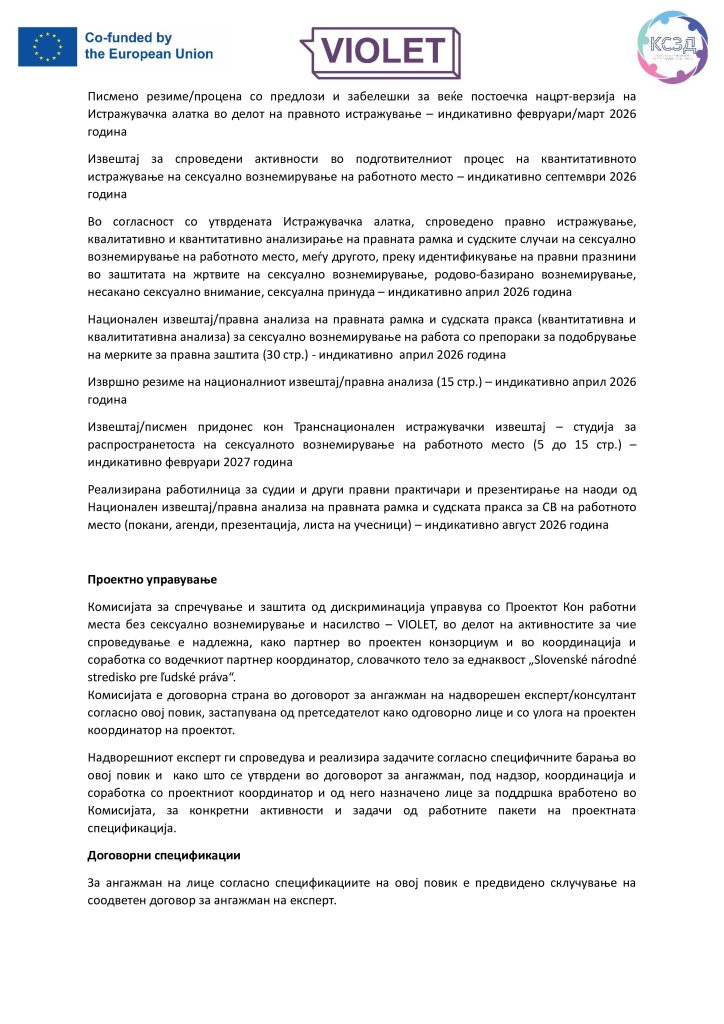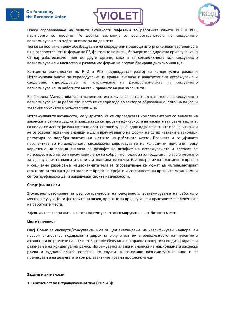 Проект: Кон работни места без сексуално вознемирување и насилство – VIOLET